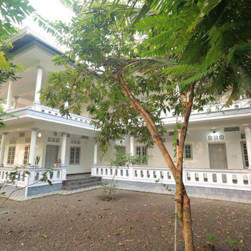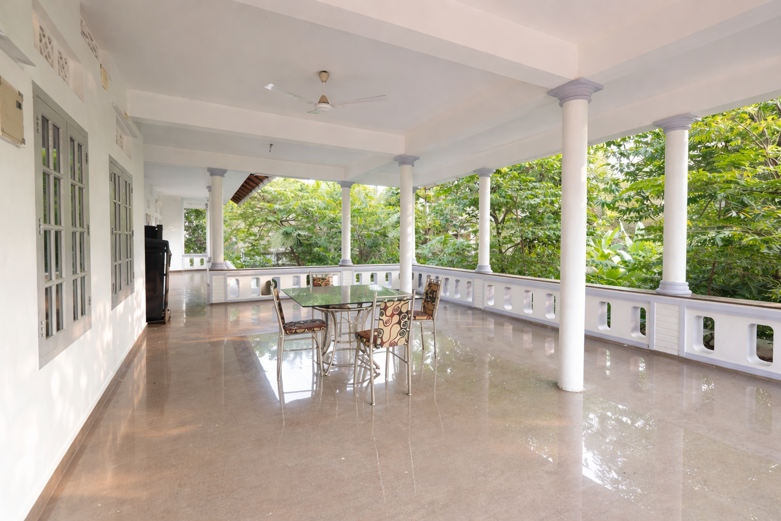 Welcome to a serene sanctuary where heritage elegance meets tropical abundance. Nestled within a lush one-acre estate in Ettumanoor, Kerala, this majestic two-storey residence offers a palace-like experience surrounded by verdant greenery, whispering trees, & the gentle rhythms of nature. Step into a beautifully restored Travancore-style mansion, with wraparound balconies, ornate columns, & traditional architectural flourishes that evoke timeless charm. The interiors are spacious, airy, & thoughtfully furnished, featuring three large, air-conditioned bedrooms with en-suite bathrooms & plush bedding. Whether you are a couple seeking quietude, a family on pilgrimage, or a traveller in search of authentic Kerala hospitality, this home offers comfort, privacy, & a touch of grandeur. The property is a botanical haven, a full acre of meticulously planted tropical flora, fruit trees, flowering shrubs, & shaded walkways. It feels like a private forest retreat, yet remains just minutes from town. Enjoy morning strolls on tiled verandas, sip tea under swaying palms, or unwind in the garden's embrace.
